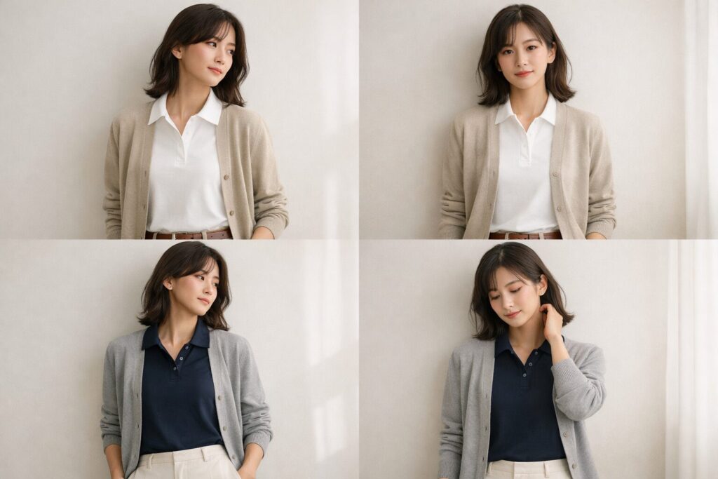 えり、出す?しまう?ポロシャツ×カーディガンの正解、全部教えます