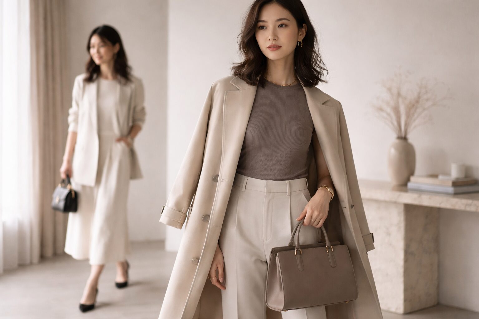 芸能人のように見せるコツは、「引き算」です。アクセサリーを盛りすぎず、色数を抑える。シンプルなアイテムほど、シルエットと素材感で勝負するという姿勢が重要になります。